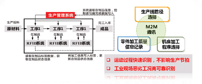 解決方案:在復(fù)雜零件和托盤上安裝RFID標(biāo)簽,有效識(shí)別身份在加工設(shè)備和線體上安裝工業(yè)讀寫器,實(shí)現(xiàn)產(chǎn)品和設(shè)備的智能通訊,為MES等信息系統(tǒng)有效提供數(shù)據(jù)采集和處理。