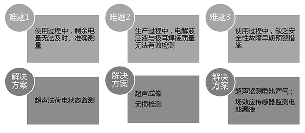 針對鋰離子動力與儲能電池實際使用與生產中的所面臨的技術難題,采用超聲、半導體傳感等特色技術,以極低的成本,大幅提高電池的生產質量、使用效率與安全性。